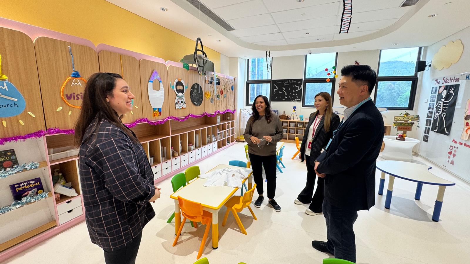 我們的嘉賓深入體驗了校園生活,觀察了學生們的學習實況,並對我們獨特的教育模式有了深刻的了解。我們展示了如何成功地將國際化教學方法與香港本地課程相結合,營造出充滿活力的學習環境。