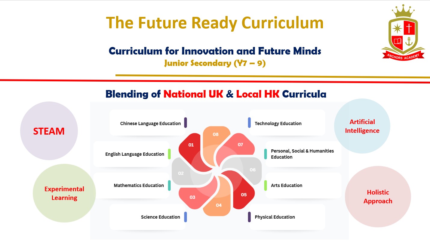 初中課程將是安基司教育不可或缺的一環,它將延續我們融合國際化課程(英國國家課程 Key Stage 3)與香港課程的獨特模式,並結合STEAM與創新,確保學生扎實掌握學科知識,培育通往未來所需的軟技能,全面裝備學生迎接未來挑戰。